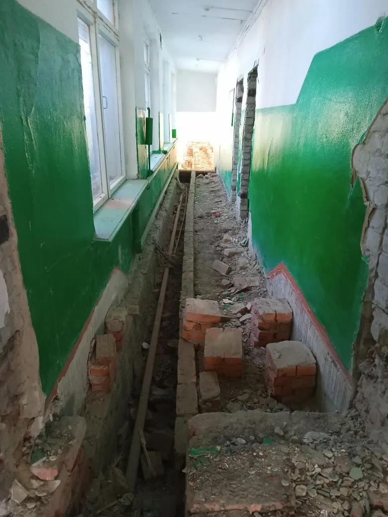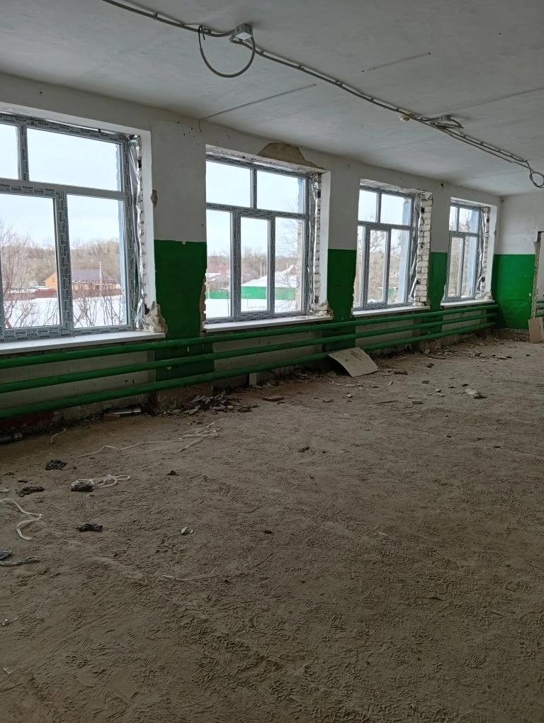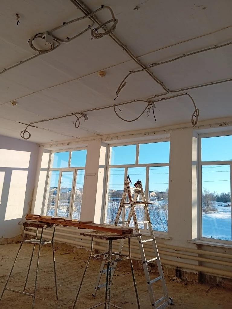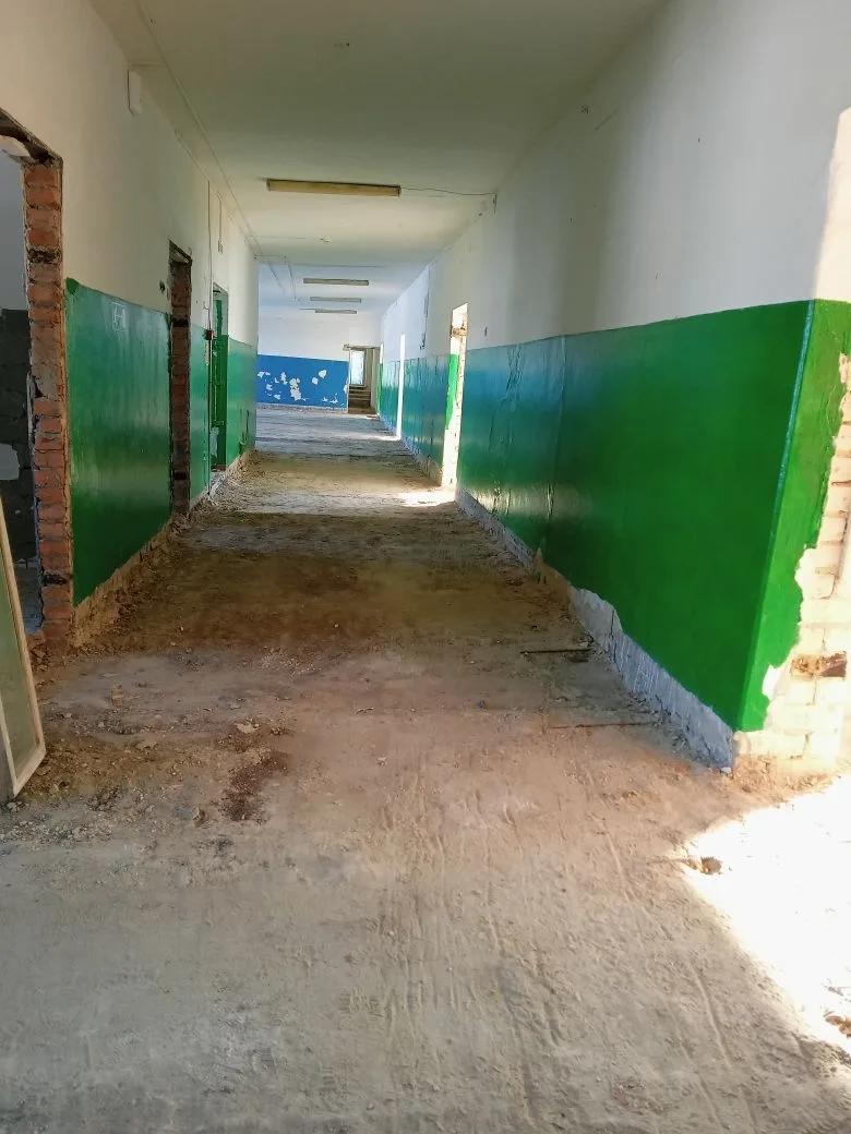 В нашей школе продолжается ремонт. Застеклен второй этаж и частично первый. Ведутся работы над освещением школы